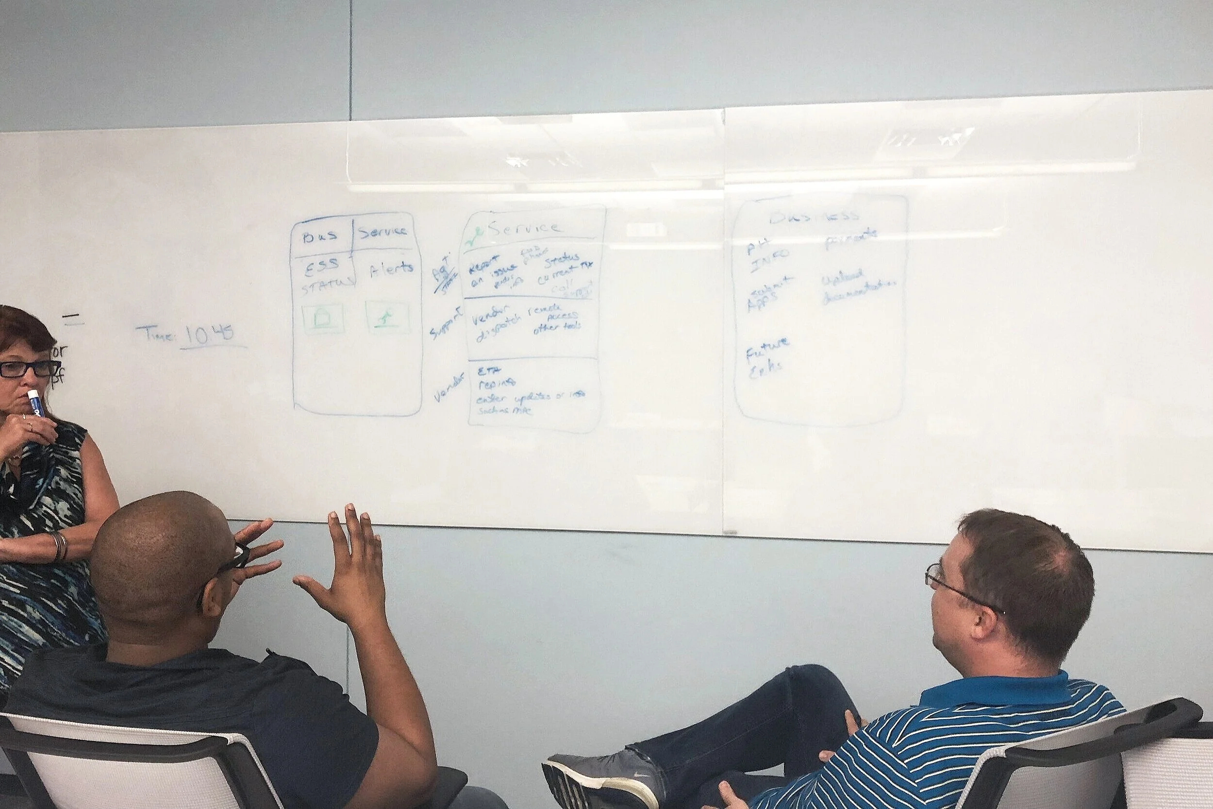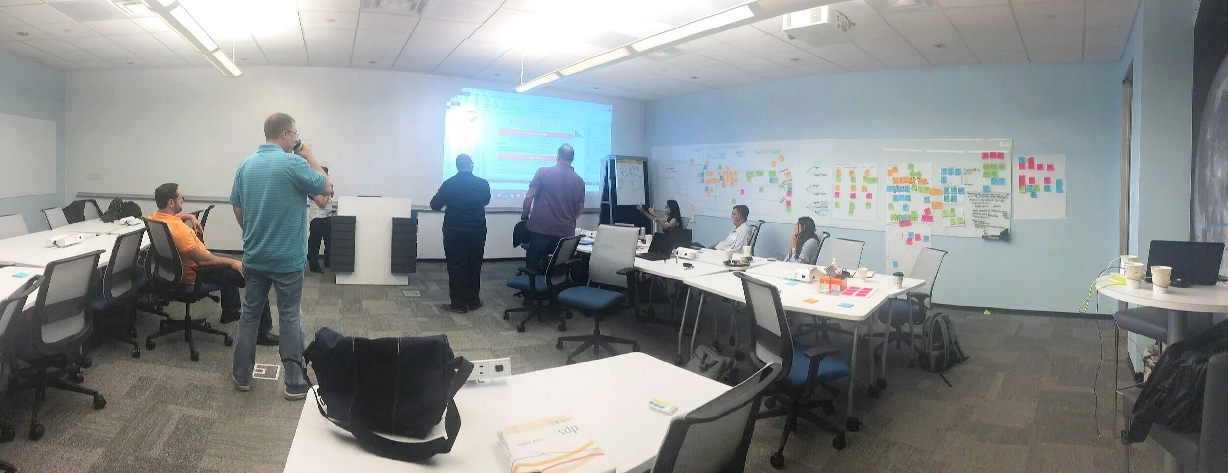 IBM and State Farm clients at the IBM Global Solution Center in Coppell, Texas (I am facilitating at the drawing board)